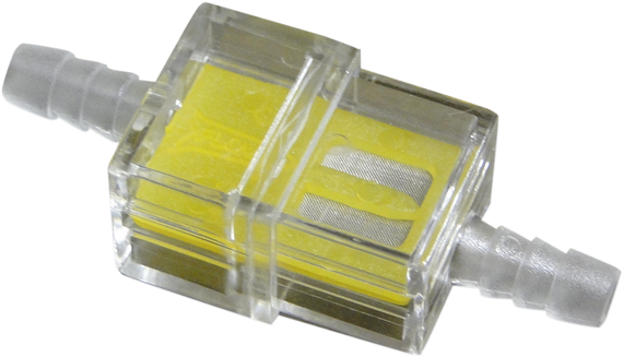Caracteristicas: Fuel Filter for 1/4"ID fuel line Clear rectangle shape housing embeds stainless steel screen element in colored frame 106 micron stainless steel mesh filtration element