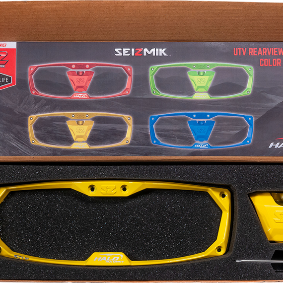 Caracteristicas: Designed specifically to fit Seizmik HALO-RA series rearview mirrors Powder coated cast aluminum for lightweight performance and durability Includes matching Rearview Mirror Bezel and Lock Block