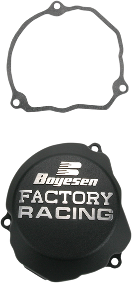 Caracteristicas: Look like a professional with the Factory Ignition Cover Seals properly, guarding inside of engine from dirt and water and outlasts stock covers Boyesen Factory Covers are cast from the highest grade of aluminum and are strong yet lightweight Super-tough, powder-coated finish resists weathering and wear and tear OEM paper gaskets can be reused, or use the supplied O-ring