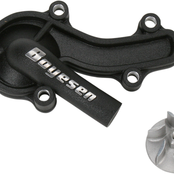 Caracteristicas: An aluminum investment-cast water pump cover and impeller combo; specifically designed to enhance the performance of your engines cooling system This high-flow, hydrodynamic water pump kit has been tested and designed to flow more coolant By increasing the flow at all rpm ranges, the engine will run cooler at a more constant temperature Patented nautilus style impeller for hydrodynamic efficiency Extend engine life