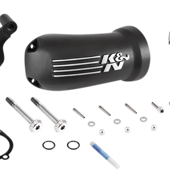 Caracteristicas: Optional Drycharger™ for increased protection from the elements is available separately K&N® High-Flow cotton air filter provides outstanding performance and protection Cast aluminum high-performance intake tube with raised detail Built-in breathers replace external OE breathers Integrated internal velocity stack