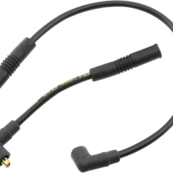 Caracteristicas: Black silicone jacket with aramid core and fiberglass braiding Terminal ends are high-conductivity brass with silicone boots Eliminate electrical leakage; provide excellent performance in high-temperature applications Work with electronic- or point-type ignitions Made in the U.S.A.