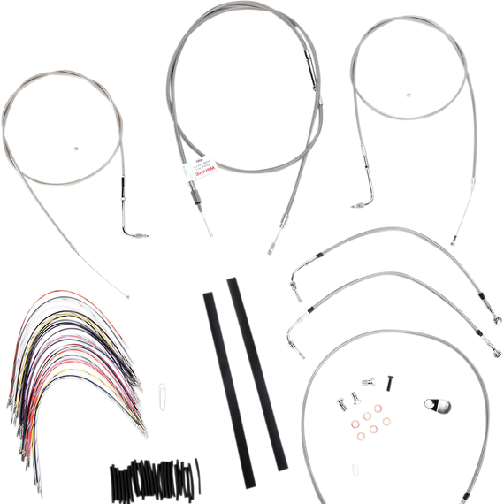 • Kits include extended brake line, extended clutch cable/clutch line, extended throttle/idle cables as required and all necessary wiring