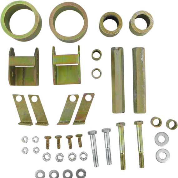 Caracteristicas: Lift 1" to 2" with big wheel kits Added clearance increases performance in mud, snow and rough terrain Give your ATV/UTV a boost over stumps and rocks Increased clearance reduces tire/fender rub Kits bolt on; instructions included