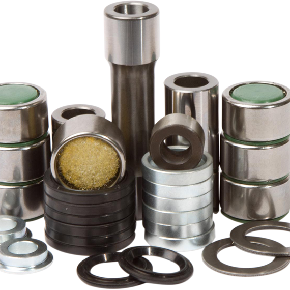 Caracteristicas: Restore handling and suspension control lost to worn or rusted linkage components Convenient kit eliminates looking up many part numbers Most kits contain lower shock bearing, seals and pin; bearings, pins, collars and seals manufactured to OEM specifications Priced as an attractive alternative to OEM kits