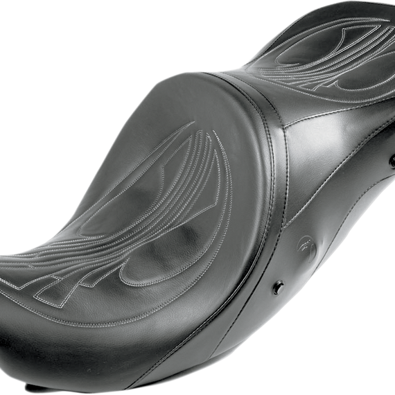 Caracteristicas: Designed with wider seating surfaces and generous back support, this seat was made for the long haul Seat has two inflatable air cells The Airhawk's Comfort Seating System is now integrated into the seat The result is the custom design and production capabilities of Danny Gray with Airhawk’s clinician-approved Dry Floatation® technology Airhawk's patented system eliminates painful pressure points and is fully customizable to each rider’s contour Riders can appreciate continuous airflow through the seat, reducing heat build-up and keeping them cool and dry; no hot seat An integrated pump and relief valve makes it possible to adjust the air pressure while seated Each seat is embroidered with the exclusive Drag Specialties Custom Stitch Pattern using Charcoal Gray Thread Made in the U.S.A.