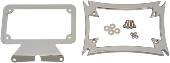 Caracteristicas: License plate frame with backing plate for United States motorcycle plates.