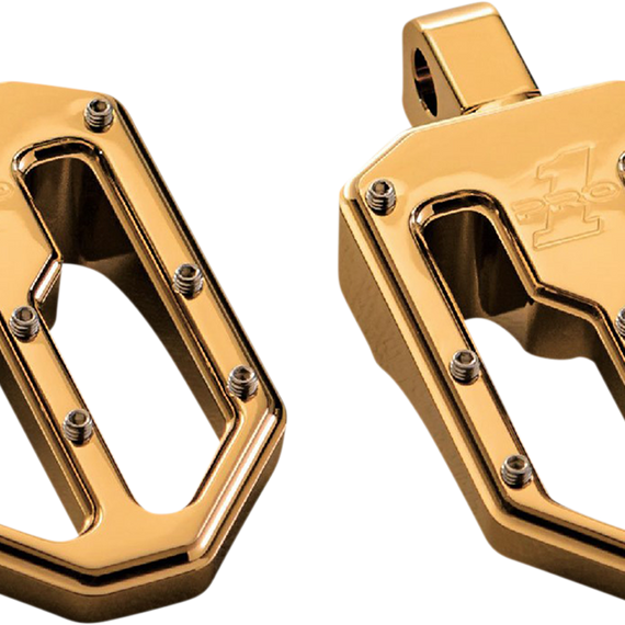 Caracteristicas: CNC Machined from 6061 Billet Aluminum Male Mount Configuration Clevis with 3/8" mounting Hole 360 Degree Adjustable Clevis with locking set screws Traditional BMX style Traction Pins that provide added grip and adjustability. (Pegs Supplied with M4-8mm Set Screws) Moto Peg Measures – (2.25” Wide) X (3.5” Long) (length not including Clevis) Kit does not include mounting hardware