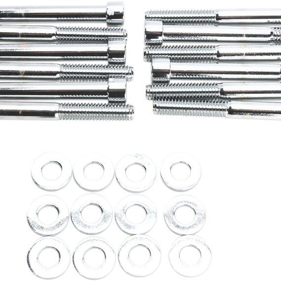 Caracteristicas: Kits feature polished stainless steel or polished chrome steel socket-head bolts Motor sets for Twin Cam include cam cover, primary cover, transmission side cover, oil hose cover, lifter base, rocker box, front inner primary, washer, motor and transmission mount bolts Motor set for M-Eight includes cam cover, primary cover, transmission covers, electric module cover, lifter base, rock boxes, top front motor mount and rear motor mount Side cover set include cam, primary, oil hose cover and transmission side cover Primary set include primary, inspection and derby cover Made in the U.S.A.