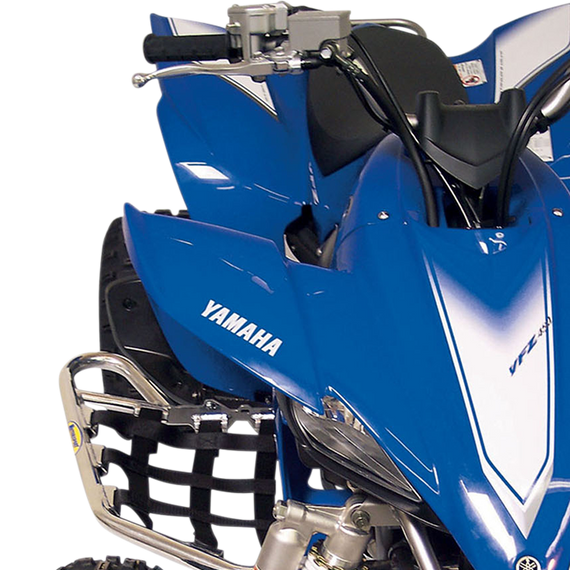 Caracteristicas: Manufactured from lightweight 1-1/4" extruded aluminum tubing Custom EZ-fit clamp brackets with silver anodized finish Wide 1-1/2" black webbing with beefy aluminum net tabs Sweep up from front to the rear for maximum ground clearance Maximum width of 50" to comply with ATVA rules Allows the use of OEM heel plate/fender extensions