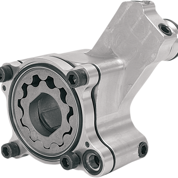 Caracteristicas: Made of 6061 billet aluminum Features aerospace design, tolerances and materials High-flow 2" chromoly gerotor gears pump 40% more pressure volume and 60% more scavenge volume Eliminates blow-by, wet sumping and oily air cleaners Increases oil pressure and provides cooler oil and engine temperatures Bolts to stock location Feuling® recommends that HP+® lifters be used with oil pump for best results (sold separately) Made in the U.S.A. Use with Feuling® cam support plate (recommended but not required).
