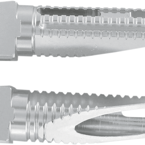 Caracteristicas: CNC-machined from 6061 T-6 billet aluminum; replace stock footpegs Lighter than stock, slash cut for greater ground clearance; have machined, not knurled, grooves for better grip