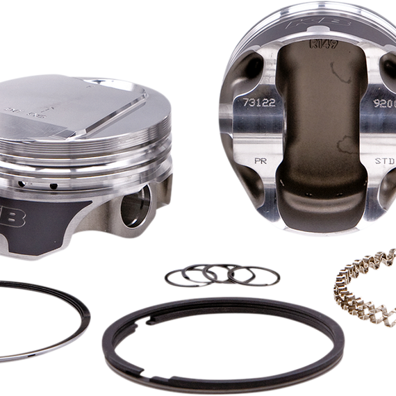 Caracteristicas: Pistons forged from 4032 aluminum alloy Offset pin design for quiet operation New superior coated skirts Each kit contains two pistons, pins, spiral-lock pin clips and Hastings moly rings