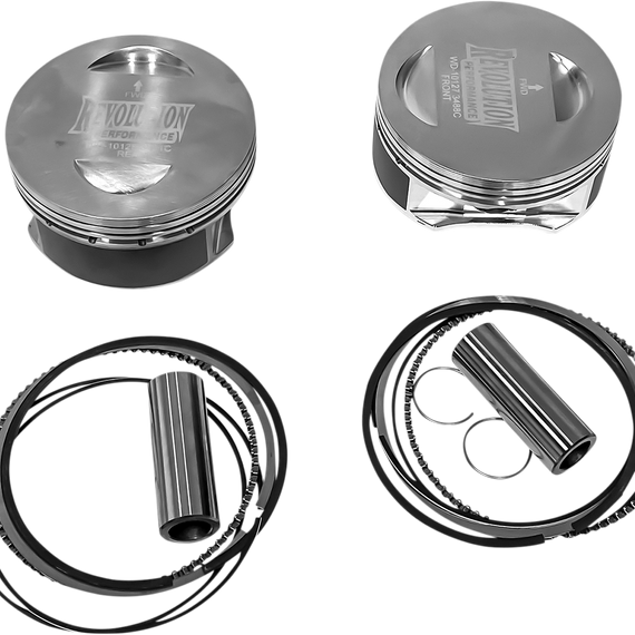 • Include pistons with skirt coating, rings, chrome piston pins and retainer clips