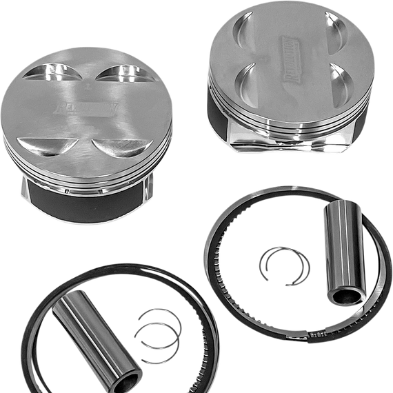 Caracteristicas: Top-quality custom-forged piston kits manufactured with high-strength aluminum alloy Include pistons with skirt coating, rings, chrome piston pins and retainer clips High-tech manufacturing ensures greater operating strength and lower expansion at high temperatures High-tension compression rings with 3mm oil scrapper rails Offset pin design for smoother operation Replacement ring sets sold as a set for one piston Made in the U.S.A.