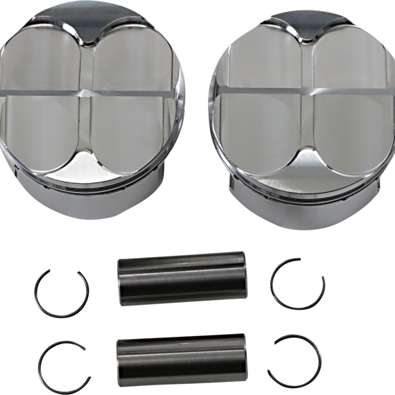 Caracteristicas: Machined from 2618-T6 high tensile forged aluminum Dome/ dish features smooth flowing radii; require no deburring or preparation JE designs are specifically engineered for extreme applications including professional competition Pins, pin fitment, lock and rings included unless otherwise noted Made in the U.S.A