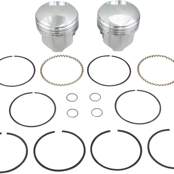 • Each kit contains two pistons, pins, spiral-lock pin clips and Hastings moly rings