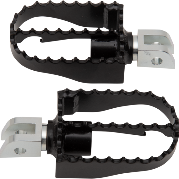 Caracteristicas: Billet aluminum is nice for your dad's Bagger, but steel is the real deal and the new MX style pegs from Burly are just that Inspired by the bear trap style of the 70’s motocross machines MX pegs have an adjustable angle that will let you tune them to your liking Mini pegs have a more narrow design for a nice, balanced feel A serrated edge will keep your feet planted Angle adjustable mount