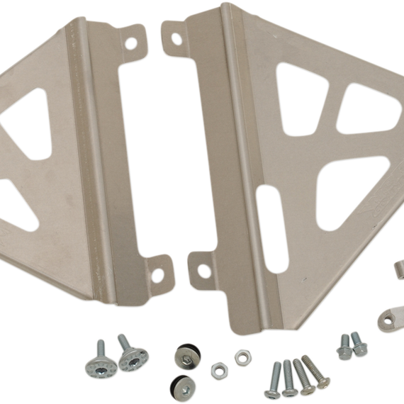 Caracteristicas: CNC-machined from aircraft grade 5052 aluminum Reinforces radiators to help prevent costly radiator replacement Lightweight, custom fit, tuck in cleanly behind radiator shrouds Simple bolt-on All necessary mounting hardware included Made in the U.S.A.