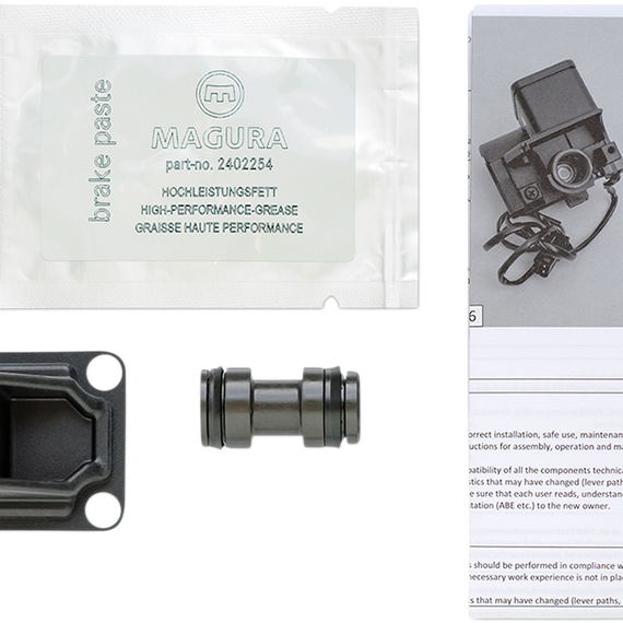 Caracteristicas: Everything necessary for a complete master cylinder overhaul Kit includes piston with seals and spring, piston bellows, container bellows, sealing ring for piston mounting screw and silicone brake paste