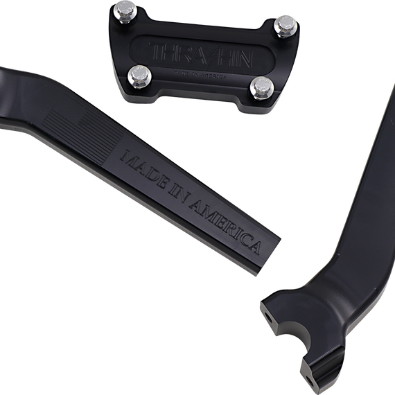 Caracteristicas: Constructed of 6061 aluminum Both pullback and straight riser options have top clamps angled at 35 Fits all models with 3-1/2" center-to-center riser spacing Work with any standard 1" handlebar Top upper clamp bolt is 4-1/2" center-to-center Base hole tapped for standard 1/2" x 13 mounting bolts (bolts not included) Sold with top clamp and hardware Made in the U.S.A.