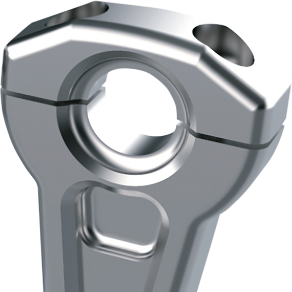 Caracteristicas: Made with 6061-T6 Aluminum 1" clamping area 3-1/2" center-to-center riser spacing Top clamp and hardware included Made in the U.S.A.