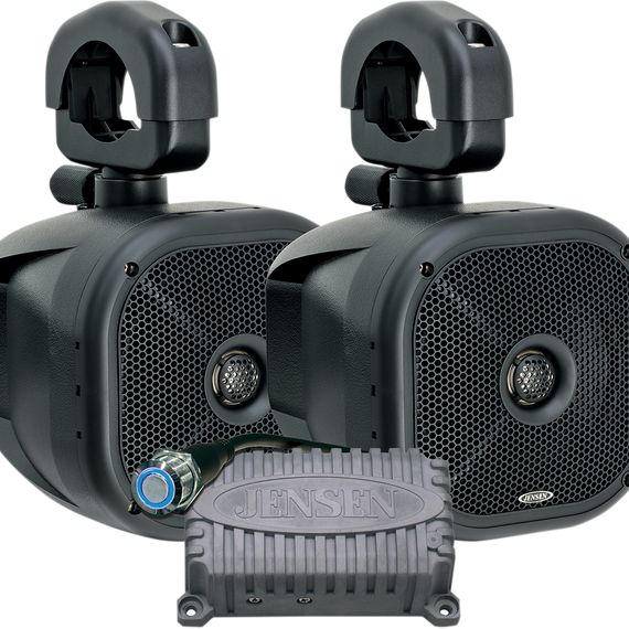 Caracteristicas: Made for side x sides, open station tractors and ZTR mowers Full range of audio reproduction through 6.5" polypropylene woofer with 1" silk dome tweeter 100W max power IPX5 waterproof Made from ASTM B117 corrosion resistant materials and has a D4329 UV stable finish Aluminum mounting clamp with square and round plastic clamp adapters Fits round bars: 1-5/8" to 3" Fits square bars: 3 x 1-1/2" and 3" x 2"