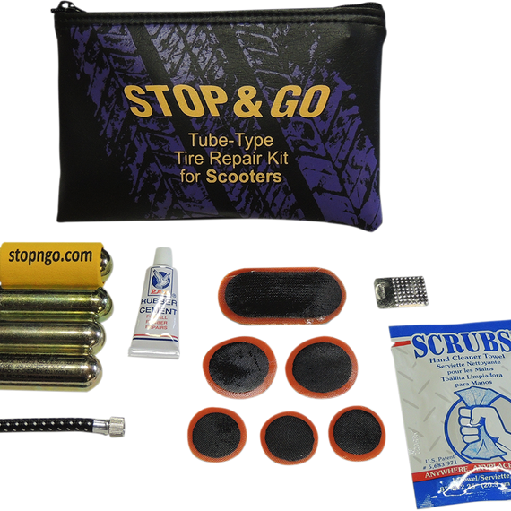 Caracteristicas: Includes six rubber patches, a tube of rubber cement and a thumb buffer to repair and secure patch to the tire, four CO² canisters to fully re-inflate the tire, as well as waterless hand cleaner and a paper towelette for quick hand cleaning Once the repair is complete, it takes only a few of the 16-gram CO² canisters to fully re-inflate the tire CO² cartridges cannot be transported on an aircraft