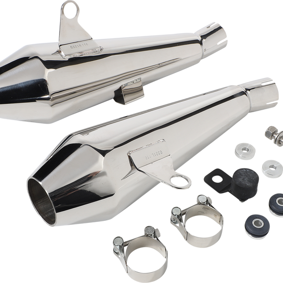 • These high-performance mufflers include a maintenance free louvered baffle system and are mounted with rubber bushings that isolate engine vibration and significantly reduces bracket fatigue