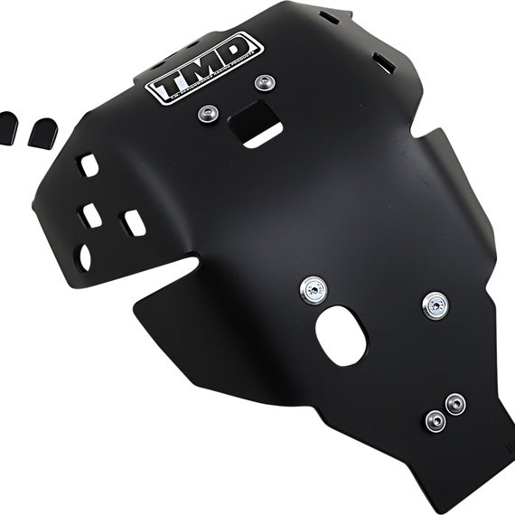 Caracteristicas: Composite impact absorbing plastic with silicone additive to reduce friction Built for rough MX, off-road and enduro riders who need maximum racing protection TMD skid plates are designed to allow maximum frame flex Precision-formed (not molded) with no welds to crack or creak Up to 45% lighter than aluminum skid plates and reduced engine bounced to the rider 35% lighter than alloy plates All hardware is 100% replaceable Covers frame rails, water pump and ignition cover Reduces noise and vibration Engineered to provide the best overall coverage