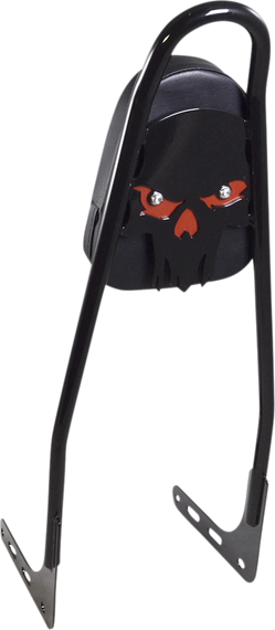 Skull Sissy Bar - Gloss Black - With Red Pad