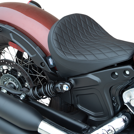 Caracteristicas: Solar-reflective leather in the seating area and automotive-grade vinyl on the sides; patented process reduces surface temperature by as much as 25°F for a cooler seat, higher durability and longer life over conventional leather or vinyl Lower position creates better rider position with improved styling Seats look like a spring mount solo that is mounted directly to the frame Seats mount to the most forward hole in the fender Flexible urethane foam interior 3/16" ABS thermoformed seat base with carpeted bottom to protect paint Includes mounting hardware Made in the U.S.A.