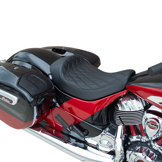 Caracteristicas: Seat is made narrow up front for better leg clearance to ground contact. This seat moves the rider back 1” and ½” lower compared to the factory seat. Includes all mounting hardware