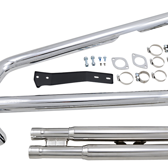 Caracteristicas: Cobra's Speedster systems combine traditional styling and modern performance technology These shotgun pipes also produce class-leading power gains In part, the power gains come from the Cobra PowerPort, their proprietary crossover technology that helps to increase overall power from idle to redline Delivers the kind of power increase you normally experience with a 2:1 system, while retaining the clean classic lines of a 2:2 pipe Full-length, 222° heat shields