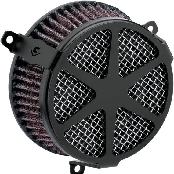Caracteristicas: The Cobra system consists of a laser-cut, formed steel cover, separate mounting ring, and all the fasteners, seals, backing plate and mounting hardware for easy installation Flow better than stock or competing units, in large part because of its unique internal venturi design of the inner filter High-flow K&N® Air Filter element ensures the maximum air intake and protection Slim profile keeps the unit away from the rider’s leg Formed stainless steel mesh insert Optimize overall performance Made in the U.S.A.