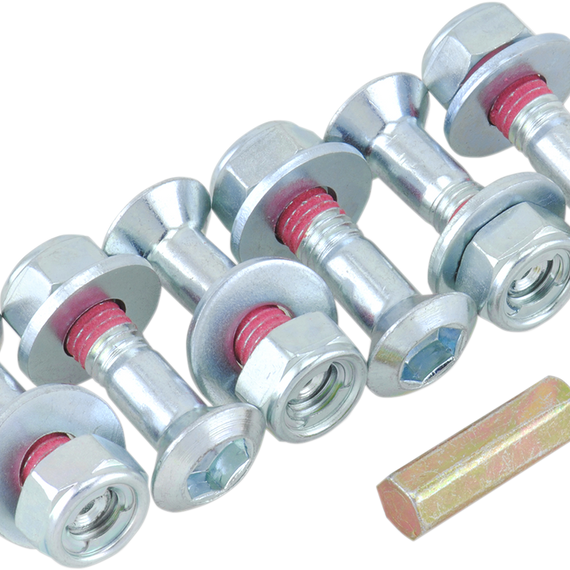 Caracteristicas: Six class 10.9 steel sprocket bolts with matching factory-style metal locking Fuji nuts Each sprocket bolt has medium-strength threadlock patches for a double lock Includes Allen key insert that adapts 8mm T-handle or socket to proper Allen key size for easy installation and removal