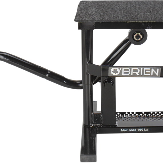 Caracteristicas: Large top surface lifts both wheels off the ground on most models of dirt bikes from 50cc - 650cc Simple lever design will not pinch fingers when carried Built-in mesh tool tray Tacky hand grip on lift lever