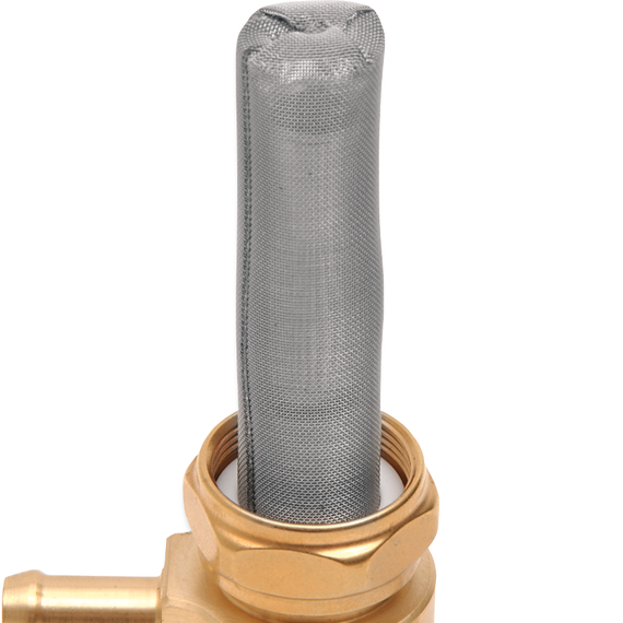 Caracteristicas: 90° movement between each detent ensures positive transition when riding Manufactured from 360 brass and stainless steel ball-bearings and components Features detents for quick, effortless switching from "On" to "Reserve" to "Off" Stainless steel internal ball bearings provide virtually friction-free petcock handle motion Valve position firmly held in place and unaffected by vibration Can be modified to fit custom tanks and/or be set to determine amount of reserve gas available with any custom gas tank Made in the U.S.A.