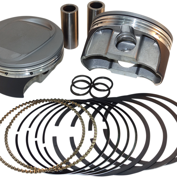 Caracteristicas: New skirt coating technology is applied to the entire thickness of the piston-to-wall clearance for a zero install clearance; coating then abrades in on start-up to hone for the perfect fit per cylinder Skirt coating eliminates piston rock for the best possible ring seal with no piston slap noise Hard anodized crown to aid in heat deflection and to reduce corrosion from alcohol fuels Hard anodized top ring groove eliminates micro welding of the ring to the groove; this maintains a flat and smooth surface for the best ring seal and top ring groove Includes piston, rings, pins and clips Made in the U.S.A.