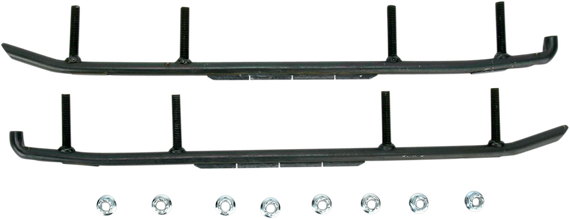 Caracteristicas: An economically priced wear bar for trail performance Features 6” of 60° control carbide with front and rear carbide wear pads Large 1/2” diameter host bar 1” long studs to fit with ski skins Rear of bar has angled cut to ease unloading
