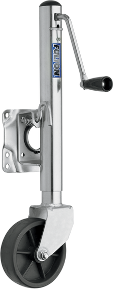 Caracteristicas: High-quality jacks with bolt-through or retaining ring swivel mounts Factory-assembled mounting bracket provides for quick-and-easy trailer installation Heavy-gauge steel stampings and proprietary bushing material for maximum support with minimal deflection Fit trailer tongues up to 3" x 5" 1:1 sidewind gear ratio makes operation simple 10" of screw travel; total lift of 22.75" Constructed of heavy-duty zinc-plated steel tubing with 6" reinforced poly wheel; 1,500-lb. swivel jack features an 8" wheel Made in China