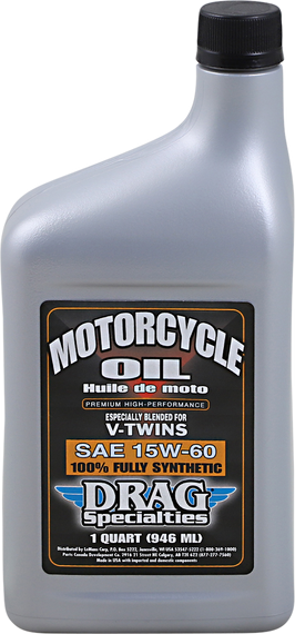 Caracteristicas: This fully synthetic base oil teamed with our selective additive package yields exceptional viscosity, stability and lasting antioxidation qualities that cannot be derived from conventional base oils Specifically engineered and produced as a multi-fill lubricant for V-Twin motors, transmissions and primaries Suitable for both air cooled or liquid cooled motorcycles Outstanding protection against sludge buildup Made in the U.S.A.