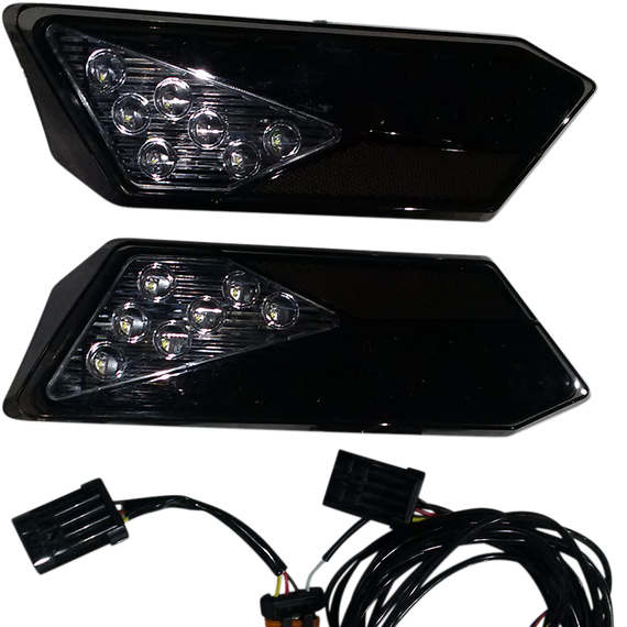Caracteristicas: Smoked plastic Polaris RZR 1000 taillight kit with white LED backup light feature Simple plug-n-play wiring harness with dash rocker switch allow White LED rear facing light with no difficult wiring All LED taillight with added white LED “accessory†backup light Simple “snap-in†design installs in existing location and to stock wiring harness Dash switch is a lighted rocker that fits into existing switch cutout 500 lumen LED White rear facing light Smoked lens for sleek custom look with factory run/brake lights plus switched white light added