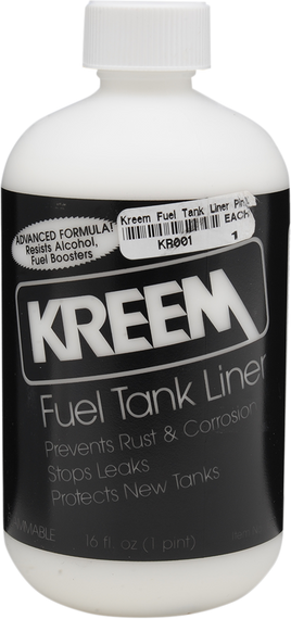 Caracteristicas: In a new or old tank, Kreem will seal and protect, prevent rust and stop leaks from pinholes and hairline cracks Resistant to alcohol and gasohol; withstands most octane boosters Most tanks require 16 fluid ounces of Kreem per 3 gallons of capacity Available in 16-fluid ounce bottles, 12 per case Not for plastic tanks KREEM is NOT compatible with all fiberglass tanks. You must spot test before use.