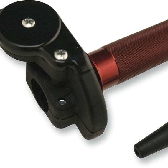 Caracteristicas: Throttle tube with larger-than-stock pulley causes throttle to open faster Less turn equals less elbow drop and a better riding position 6061 billet aluminum construction with knurled surface Delrin bushings in both ends of the tube eliminate all aluminum-to-aluminum contact to give the feeling of a ball-bearing tube without rust or freeze-up Installs into stock housing; no modifications required End cap is removable for handguard or bar end installation Made in the U.S.A.