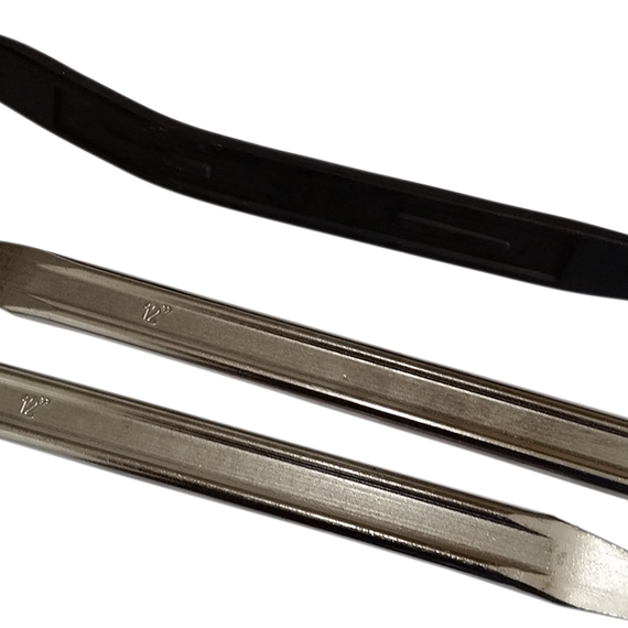 Caracteristicas: These are quality levers, extremely rugged and well balanced, and they are a BeadBuster™ exclusive design The unique curved shape of the large 15" tire lever makes removal easy with extra leverage, and it has the perfect shape for reaching over the lip of the rim to start the job The shorter tire levers are perfect for working around the tire, and also have a curved tip on one end Set offers two 12" levers and one 15" lever Tire spoons work great on anything from scooters to large trucks and tractors