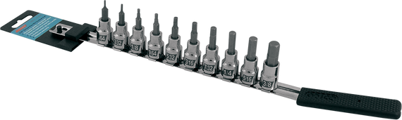 • Top-grade metric hex and Torx® bit socket sets include all the sizes needed
