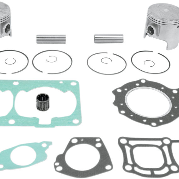 • Include pistons, rings, pins, clips, racing needle bearings, head and base gaskets, intake and exhaust gaskets