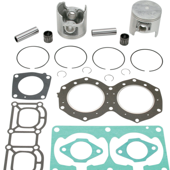 • Include pistons, rings, pins, clips, racing needle bearings, head and base gaskets, intake and exhaust gaskets