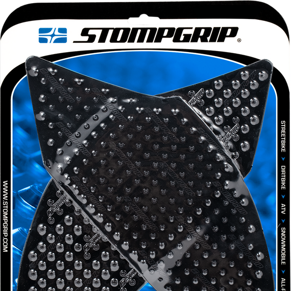 Caracteristicas: Make gripping your ride incredibly easy for increased bike control with more contact between bike and rider Provides more lower body grip and less upper body stress Ultra-clear proprietary elastomer material means paint and graphic remain visible through traction pads Non-abrasive material; designed to wear down and be replaced like a tire Will not wear down leathers as compared to grip tape Pre-molded with rounded edges that resist peeling Super-strong 3M™ peel-and-stick adhesive Made in the U.S.A.